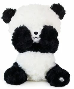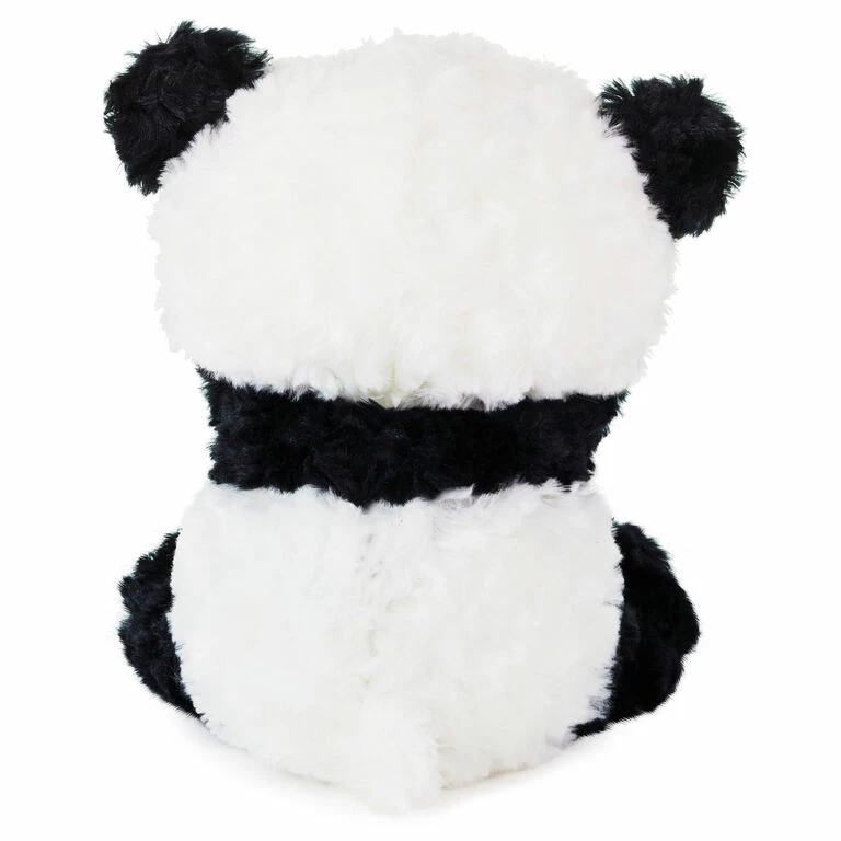 - Animated panda stuffed animal is made of soft plush fabric.