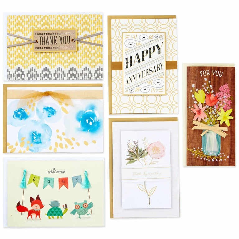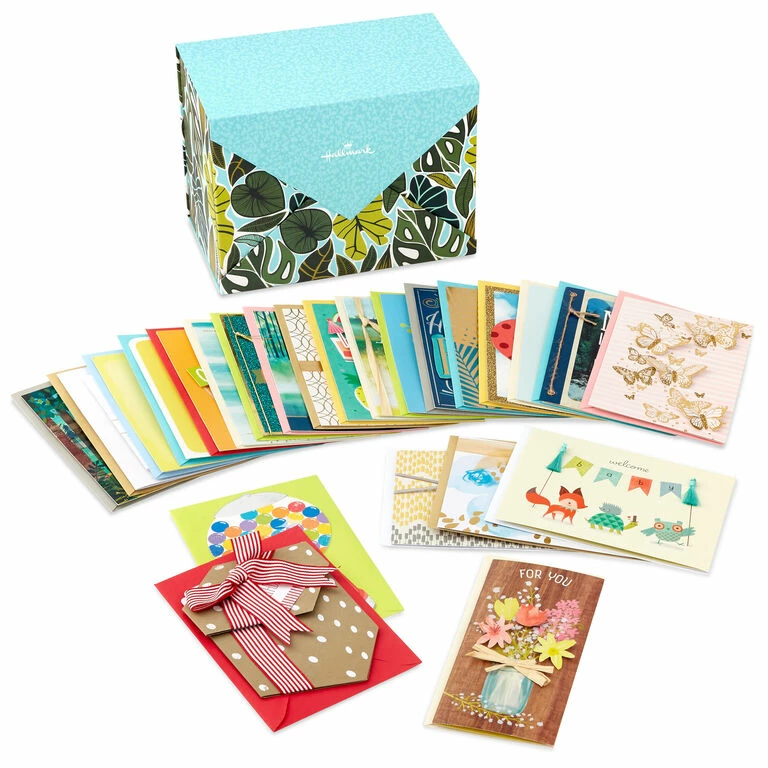 - Box includes 24 assorted cards and envelopes: 12 birthday, 1 new baby, 1 love, 1 anniversary, 1 thank-you, 2 thinking of you, 2 sympathy, 2 congratulations, 2 blank.