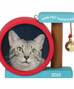 Have a very “meowy Christmas” with this playful photo holder Christmas tree ornament. Frame features a cat scratcher tree design with a jingle bell attachment. Add a small snapshot of your favorite feline to celebrate kitty’s first Christmas or to remember a special cat for years to come. Year-dated 2023.
