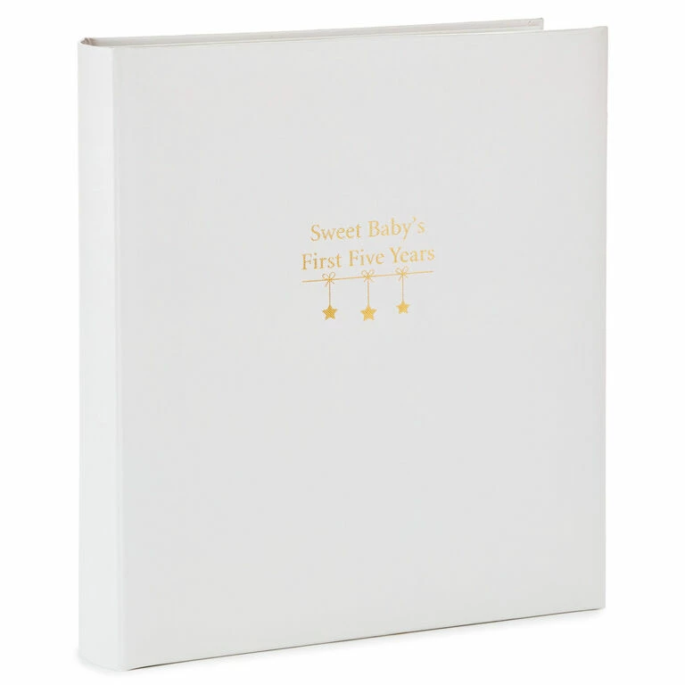 - Includes 72 designed pages with editorial prompts for baby’s first 5 years, 1 poly pocket for memorabilia and optional pages.