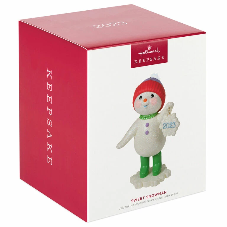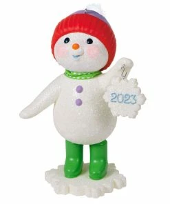 Let this sweet, sparkling fellow bring an extra decorative touch to your holiday decor. Bundled up in a colorful stocking hat, scarf and boots, the glittery snowman Christmas tree ornament holds a silver-color hook to display the included “2023” snowflake or your own favorite miniature ornament.