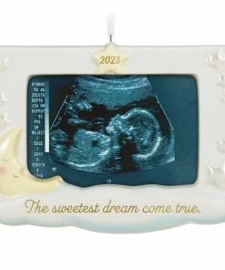 Your first glimpse of baby is a moment you’ll cherish forever. This year-dated 2023 porcelain sonogram picture holder featuring a moon-and-stars design is sure to become a treasured family keepsake, whether you hang it as a Christmas tree ornament or display it all year long! It’s also a perfect gift for a mom-to-be or expectant grandparents.