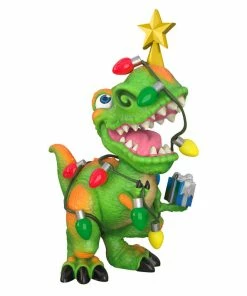 Get ready for a holiday season of prehistoric proportions with this fun Tree Rex Christmas tree ornament. The cheery T-Rex is wrapped in string lights and topped with a star as he holds a present to celebrate the holidays in dino-mite style. He’s the perfect decoration for anyone who loves dinosaurs or witty wordplay.
