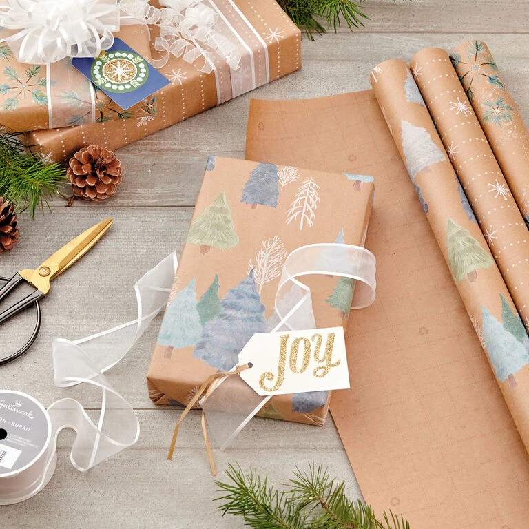 Hallmark Winter Nature Kraft Prints 3-Pack Christmas Wrapping Paper, 90 Sq. Ft.