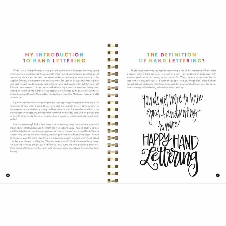 - Spiral-bound how-to book built on inspirational messages features step-by-step instructions and practice pages for turning handwriting into hand lettering.