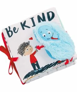 - Mud Pie “Be Kind” polyester cloth book features interactive pages.
