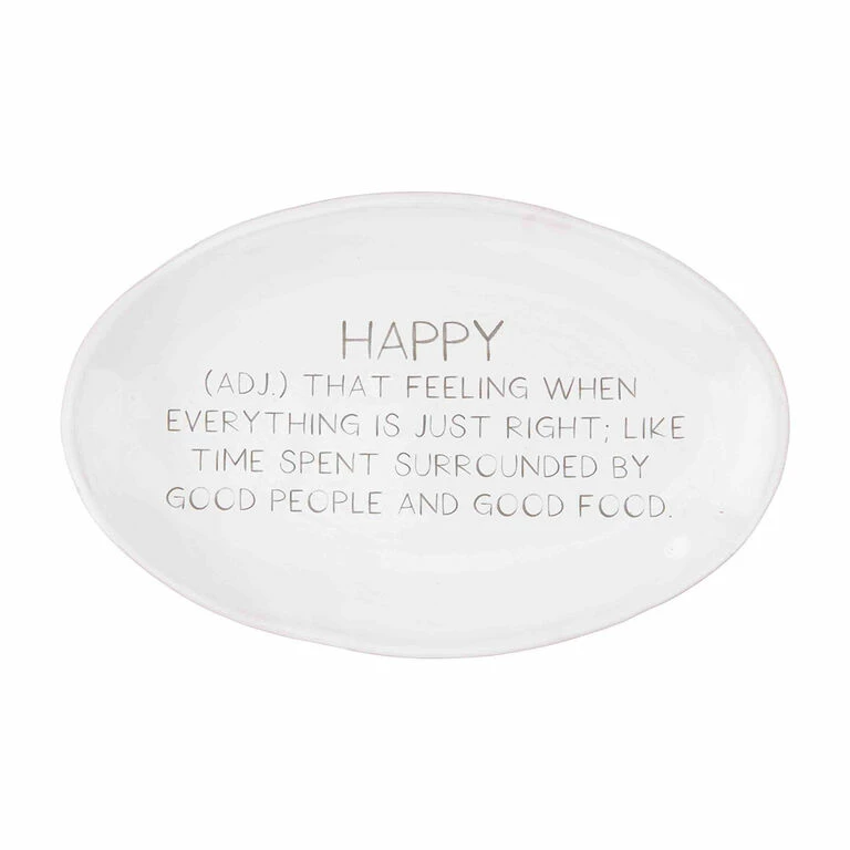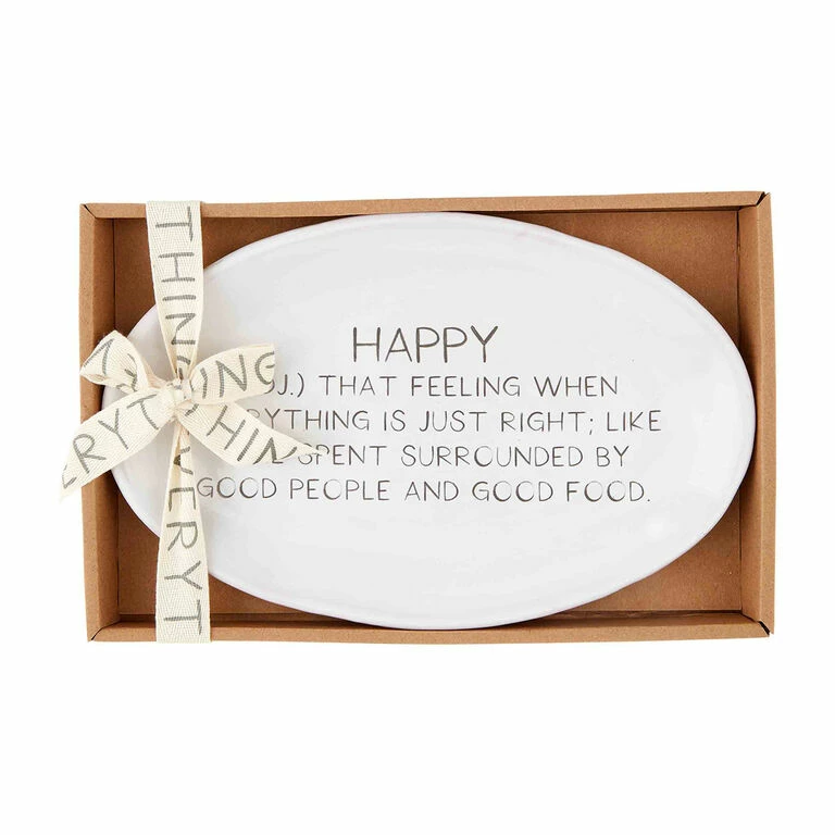 Surround yourself with good people and pile this charming platter with good food. Mud Pie glazed ceramic tray features a positive message defining happy and is gift boxed with a ribbon imprinted with “everything.” It makes a thoughtful and functional gift for birthday, Mother’s Day, wedding or bring it to a party hostess filled with homemade treats.