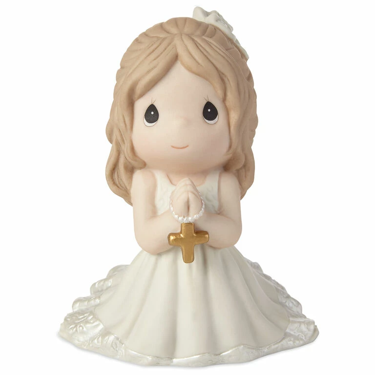 Her first communion is an important step in your journey of faith and a joyful occasion for her family. This miniature figurine of a girl kneeling in prayer makes a lasting memento of this special day in her faith journey. Handpainted figurine is meticulously handsculpted of bisque porcelain. Celebrate this special milestone with a gift that will be treasured for all of her life.