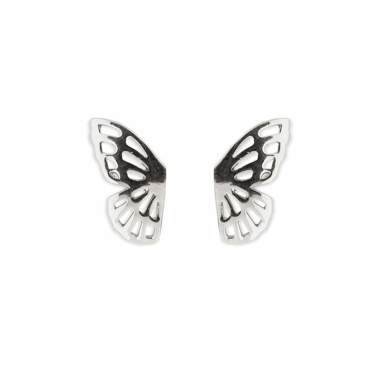 - Pura Vida silver earrings feature cutout butterfly wing design.