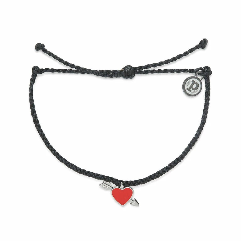 You’ll crush hard on this adorable accessory from Pura Vida. Handmade braided bracelet features a red enamel heart pierced by an arrow for a darling accent to any outfit. The waxed string cording is waterproof and meant for frequent wear as it only enhances the natural look and feel. Pura Vida provides sustainable jobs to artisans worldwide who are dedicated to the “pura vida” way of life. Makes a lovely gift for her birthday, anniversary, Valentine’s Day or other occasion.