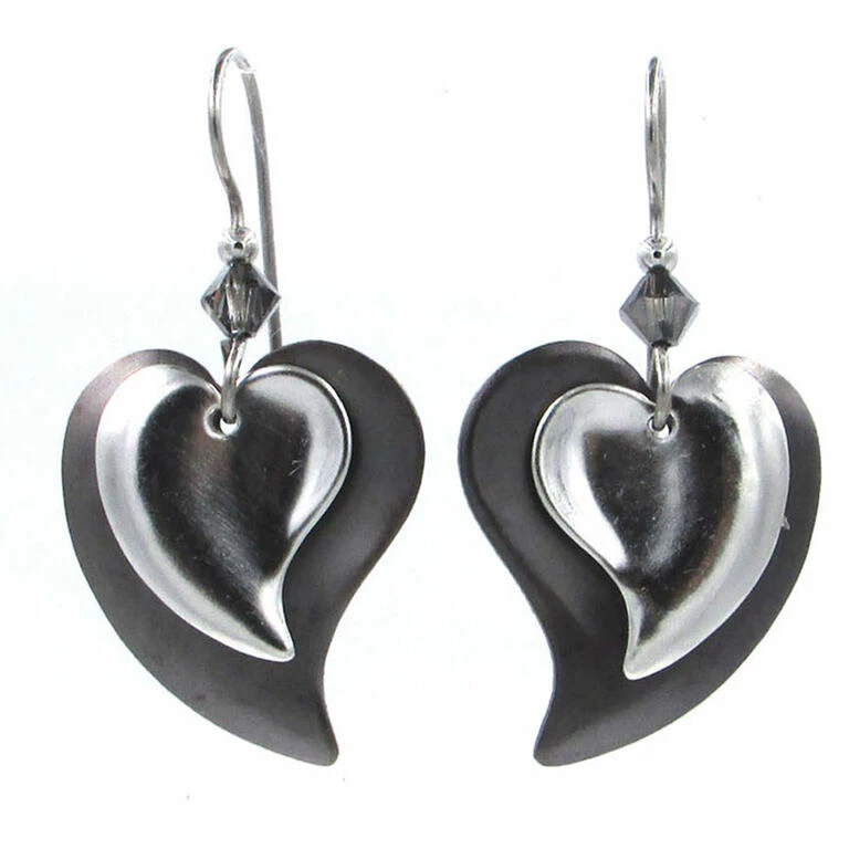 Accessorize your wardrobe with a pair of classy, versatile drop earrings. The handcrafted jewelry features layered metal silver hearts with crystal accents on the ear wires. Makes a lovely gift for her birthday, anniversary, holiday or just because.