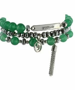 There is always something to be grateful for if we look closely. Let this bracelet remind you of what’s important in life. This set of three stretch bracelets is made with genuine aventurine stones and exceptional silver metal beading featuring subtle tassel and charm accents that coordinate with its message on a silver bar. Encourage yourself, a friend or loved one to live life with gratitude when you give them this quality jewelry for their birthday or as a gift of encouragement.