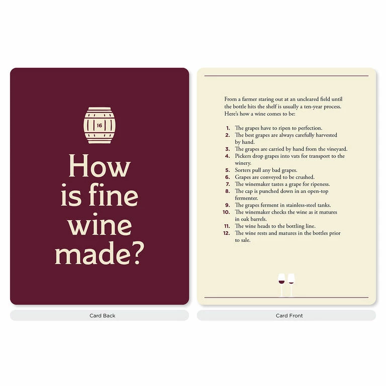- Workman Publishing Wine Lover’s Card Deck includes 50 cards in a box.