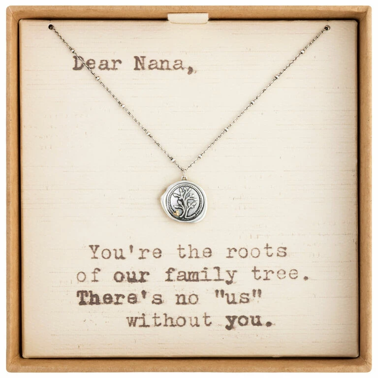 - Packaging sentiment: Dear Nana, you’re the roots of our family tree. There’s no “us” without you.