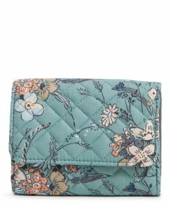 - Vera Bradley compact wallet features Sunlit Garden Sage pattern.