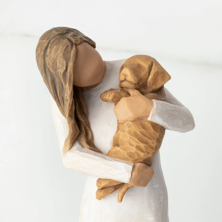 Pets are friends, pets are family. Our pets are great examples of the qualities we look for in friendships—true, present and loving. This expressive Willow Tree figurine featuring a girl holding a golden brown puppy captures the joy of this special relationship. The keepsake resin sculpture makes a meaningful gift for a friend, neighbor or pet-sitter as an expression of friendship, love and appreciation.