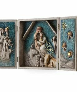 This beautiful Starry Night Nativity features an 8″ box that opens up as a triptych to reveal a starry night encircling an intimate manger scene. It can be displayed year-round, with as much visual interest when doors are closed as when opened. The piece can hang on a wall, or sit on a mantel or table. Hinged doors open flat or at an angle.